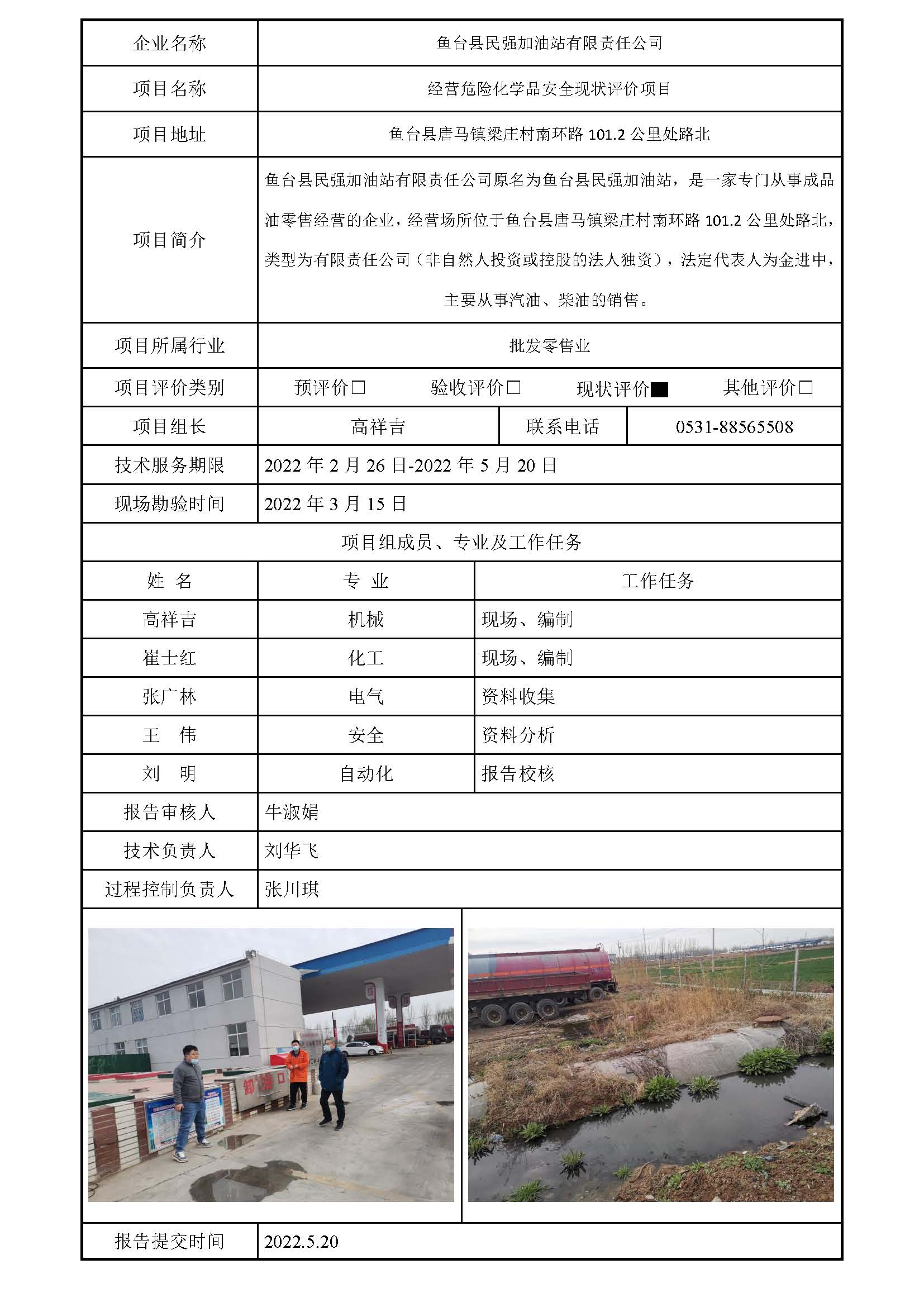 鱼台县民强加油站有限责任公司安全评价报告信息公开