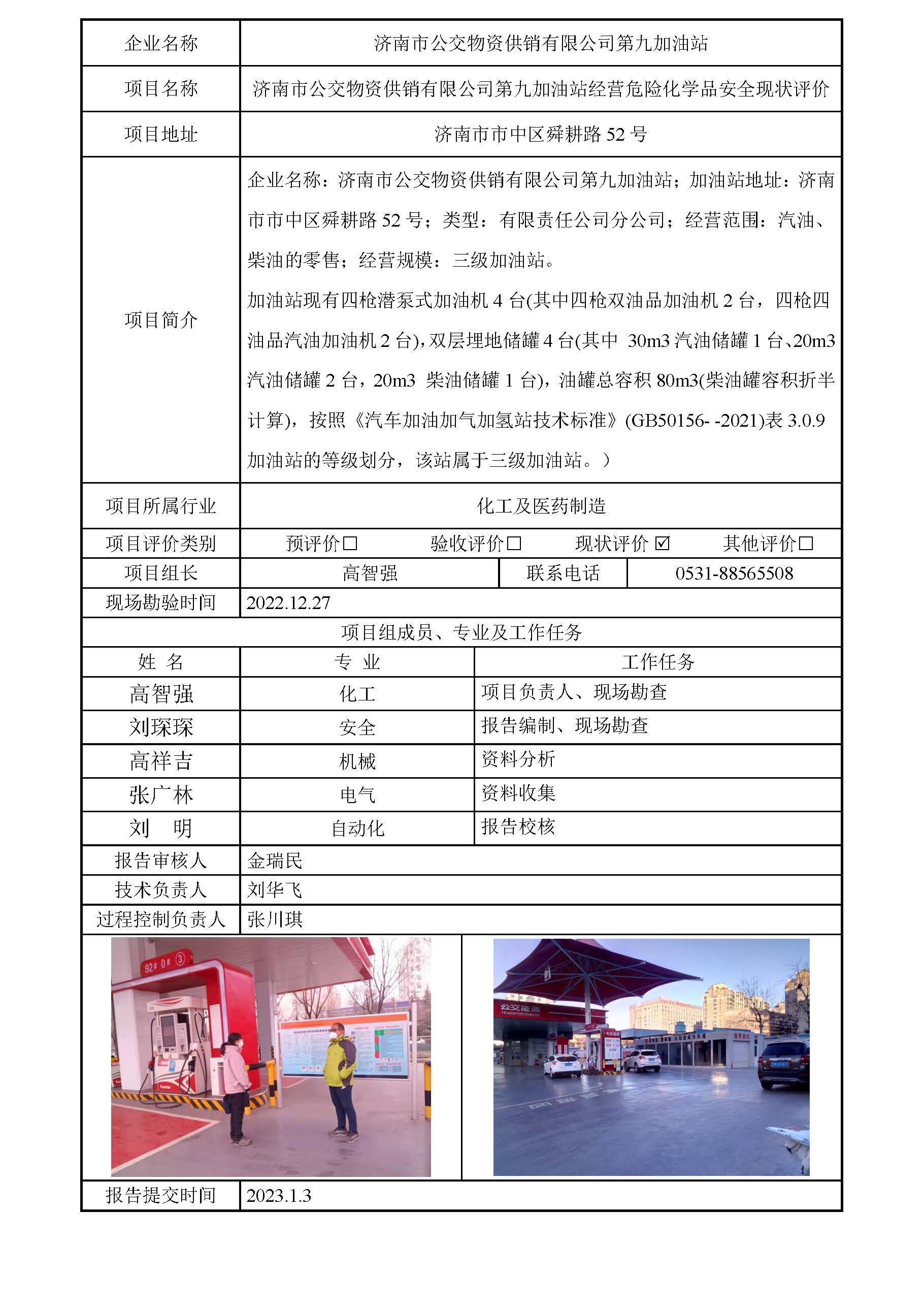 济南市公交物资供销有限公司第九加油站安全评价报告信息公开