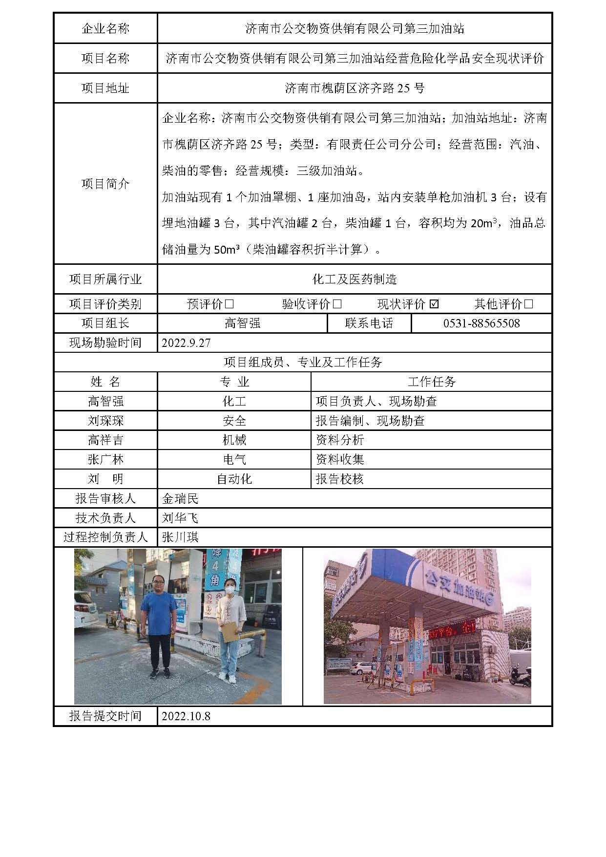 济南市公交物资供销有限公司第三加油站安全评价报告信息公开