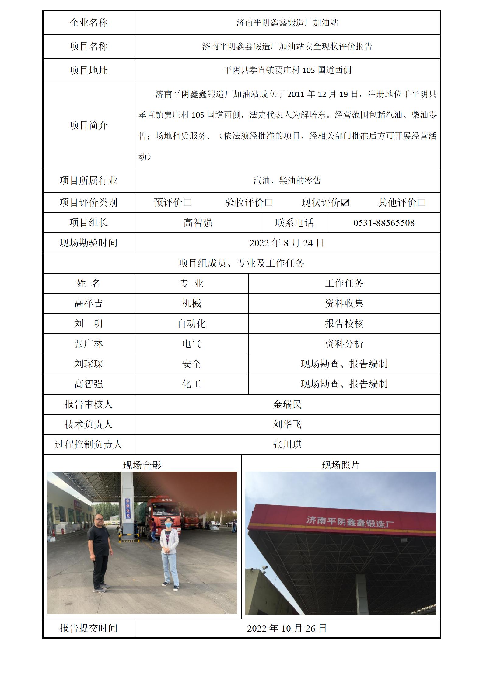济南平阴鑫鑫锻造厂加油站安全评价报告信息公开