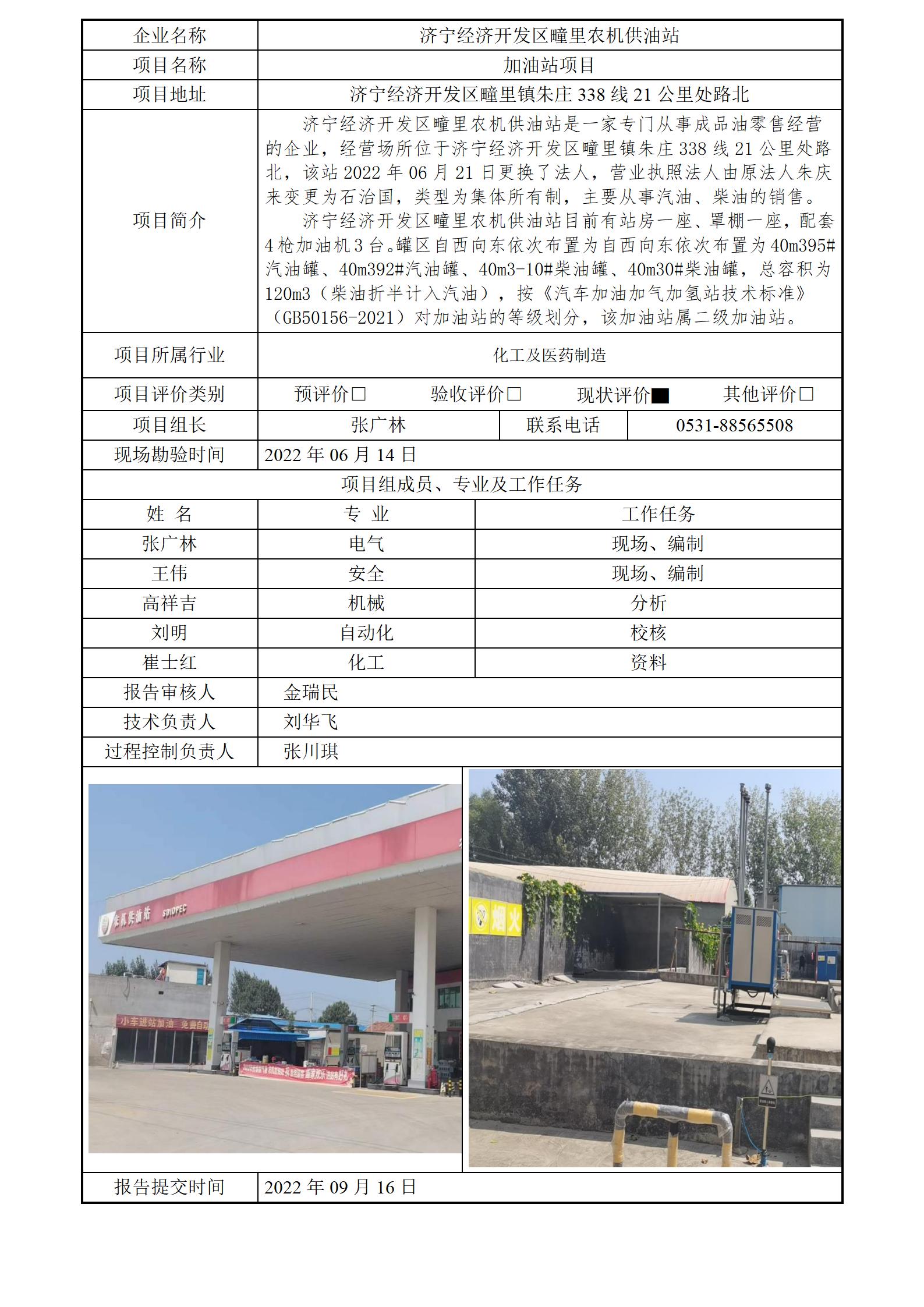 济宁经济开发区疃里农机加油站安全评价报告信息公开