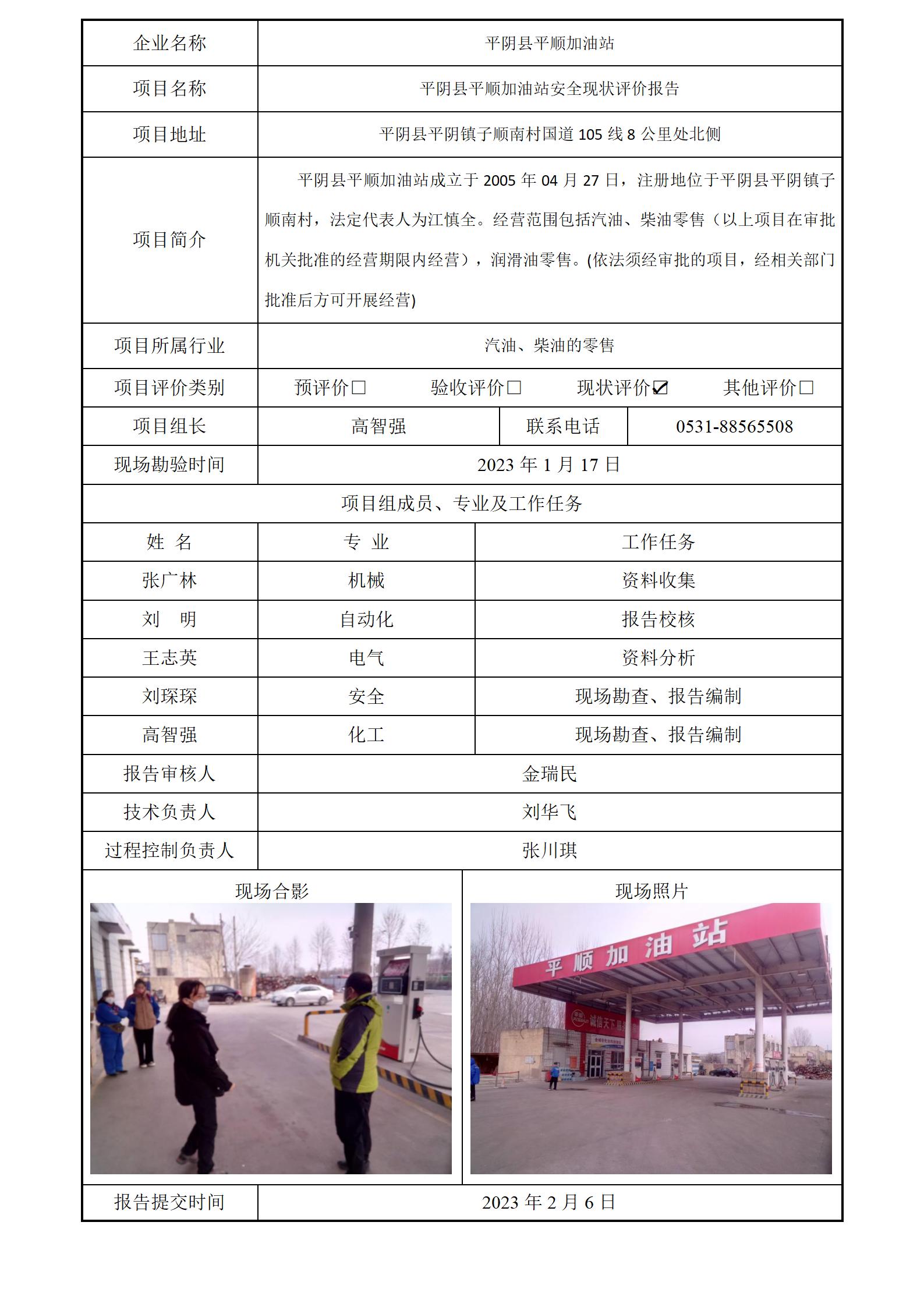 平阴县平顺加油站安全评价报告信息公开